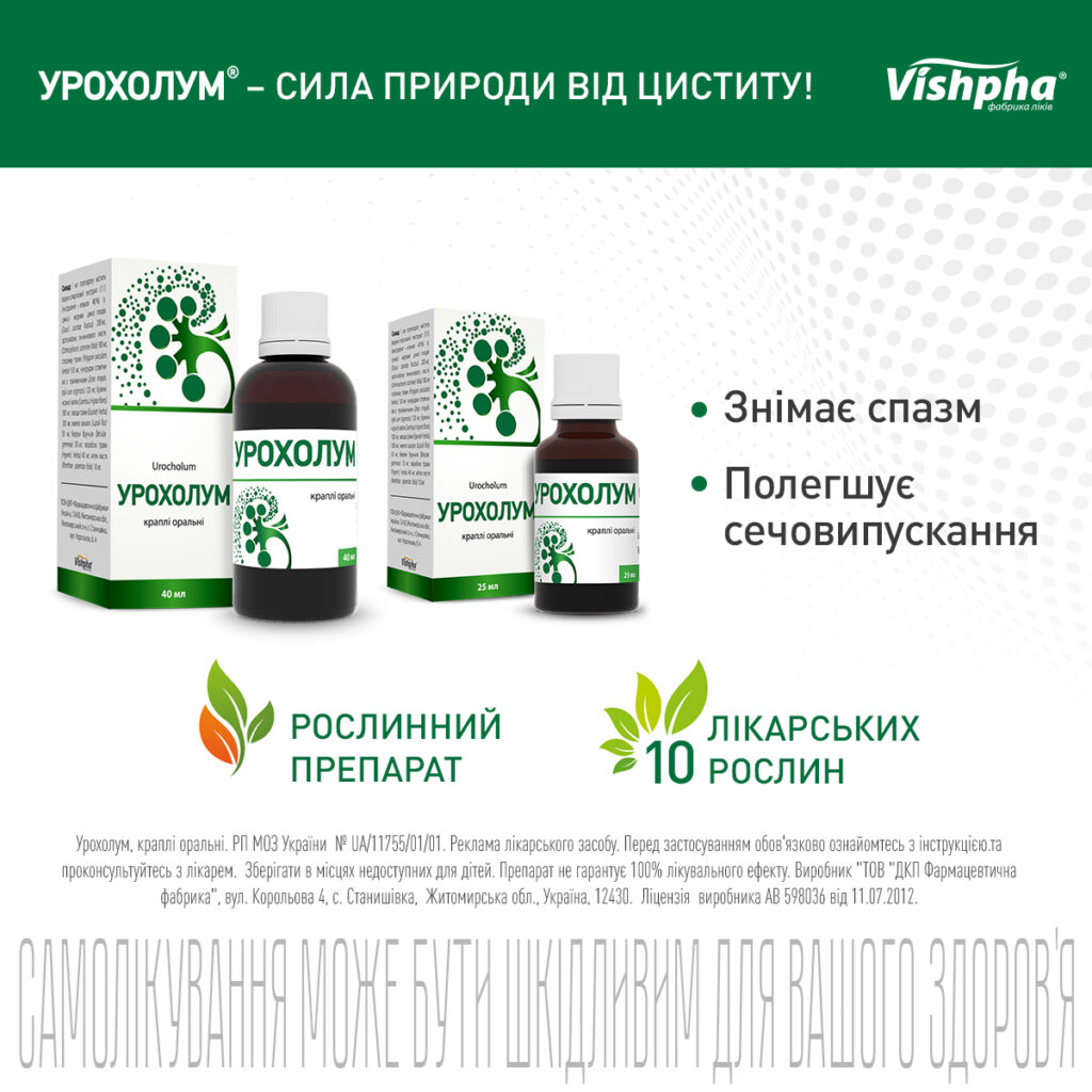У комплексному лікуванні циститу сучасний препарат Урохолум показав відмінні результати. Цей засіб є комбінованим фітопрепаратом, який призначається завдяки своїй антисептичній, протизапальній і спазмолітичній дії. Препарат представлений у двох формах (краплі та капсули). Урохолум також ефективний для лікування уретриту, сечокам’яної хвороби, різних захворювань нирок.